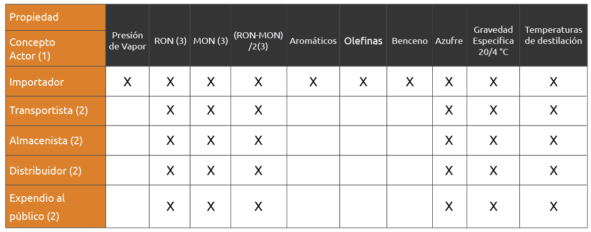Tabla A.1 Pruebas de control aplicables a gasolinas regulares y Premium.